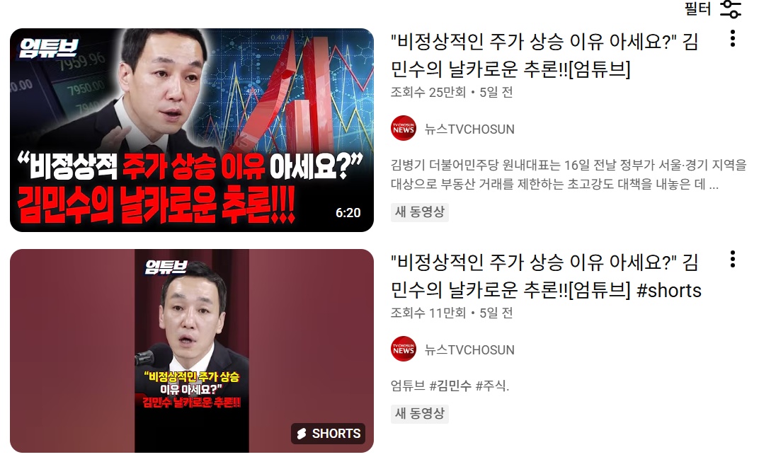 지난 16일 TV조선 유튜브에서 진행자는 "김병기 (더불어민주당) 원내대표의 얘기도 이해하기 어려웠다"며 "부동산 대책 발표 뒤 '코스피가 사상 최고치가 됐다'고 자화자찬하면서 '부동산에 묶였던 자금이 이제 성장 동력이 될 것'이라고 얘기(했다)"고 말했습니다.