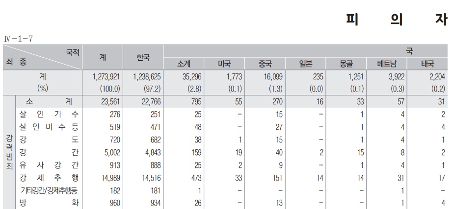 국내 범죄 피의자, 외국인은 2.8%뿐